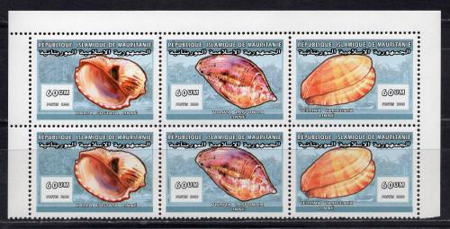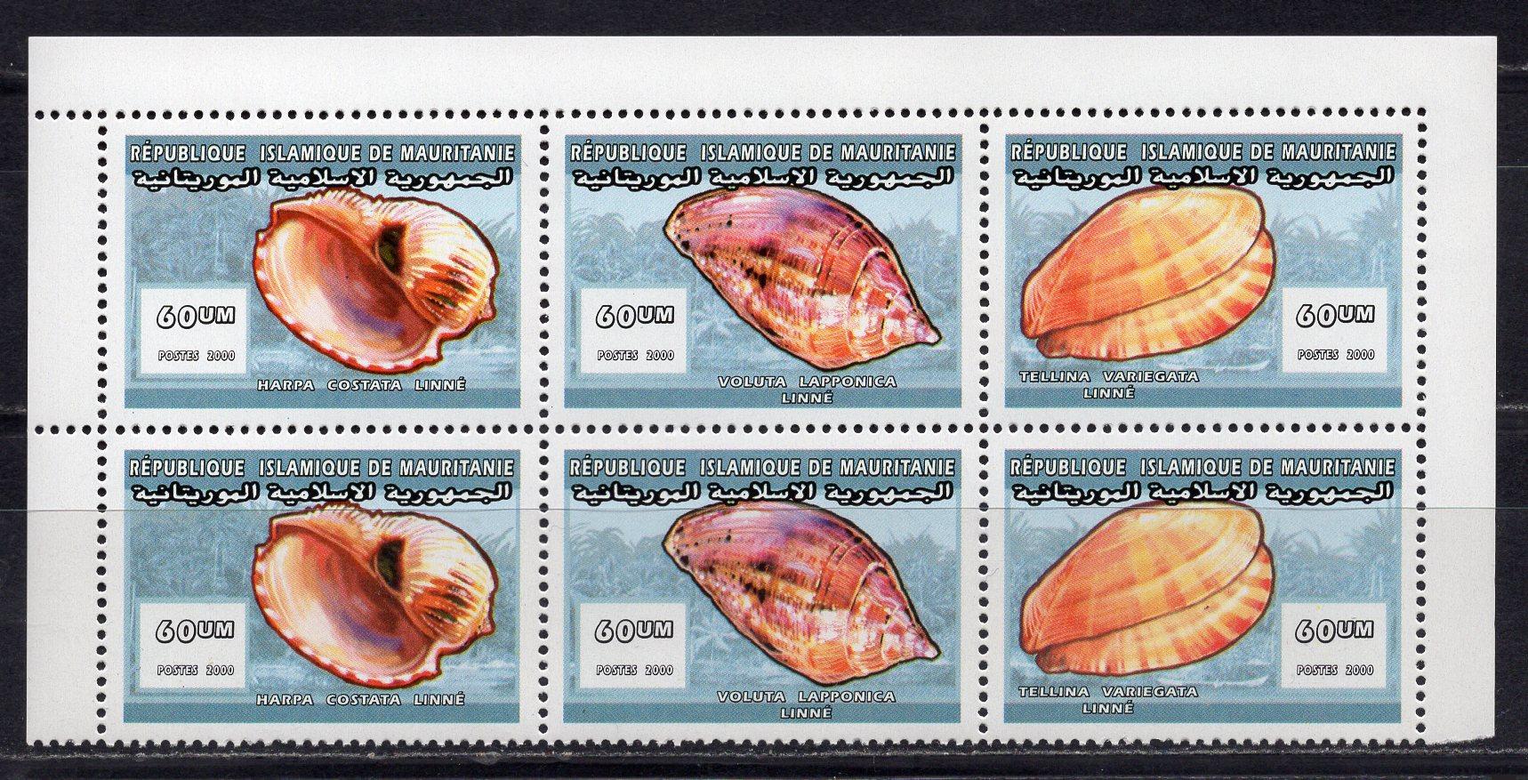 Почтовые марки. Мавритания, 2000 г. №1062а-1064а. Сцепка. Ракушки.