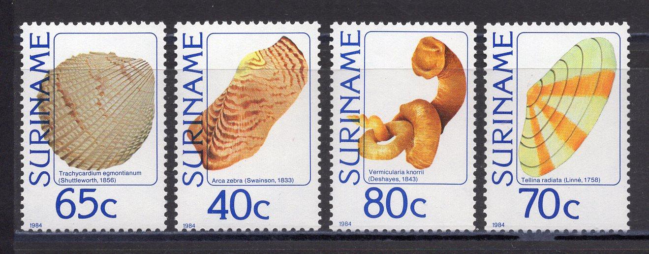 Почтовые марки. Суринам. 1984г. Ракушки. №1071-1074.