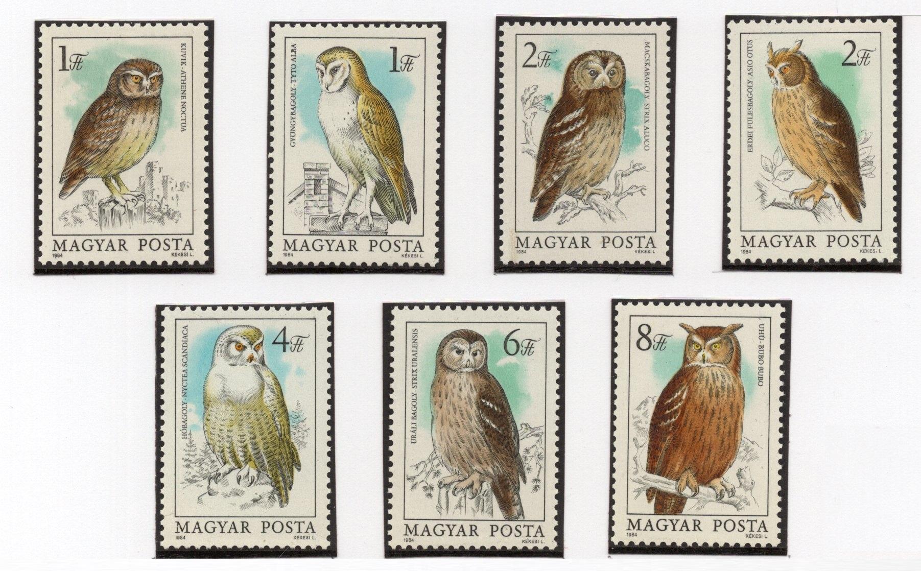 Почтовые марки. Венгрия, 1984 г. №3725-31. Совы.