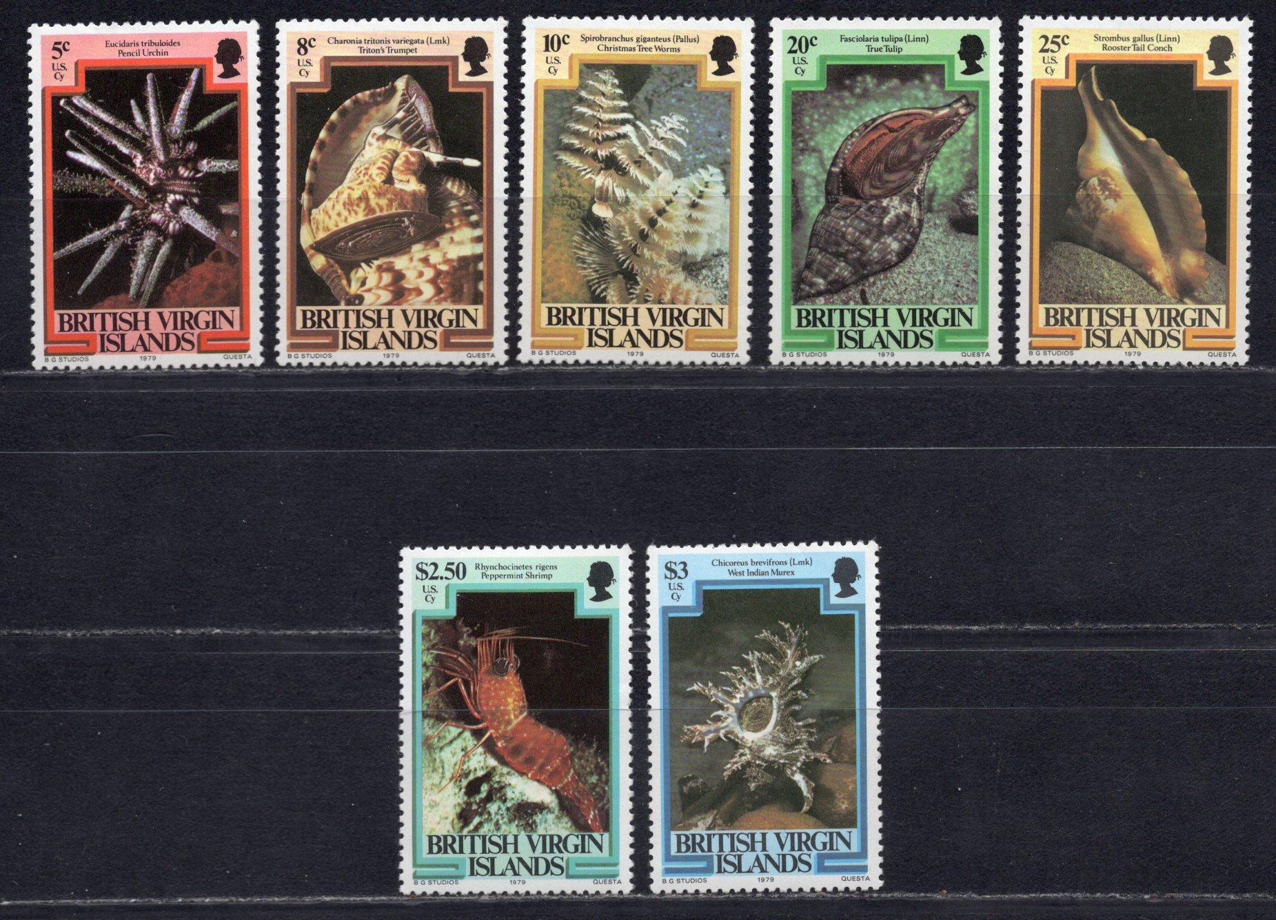 Почтовые марки. Виргинские о-ва, 1979 г. №369-381 (некомплект). Ракушки. Ракообразные. Морская фауна.