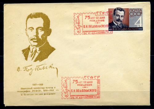 Конверт ХНК с маркой и СГ. СССР 1962 г. 75 лет со ДР В. Подбельского. КЗ.