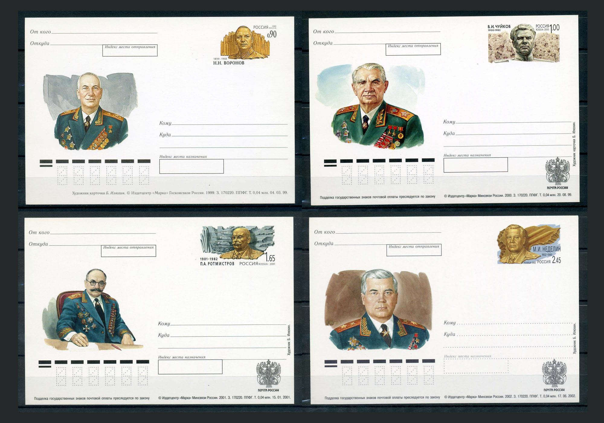 Почтовые карточки с ОМ. Россия 1999-2002 гг. Маршалы СССР.