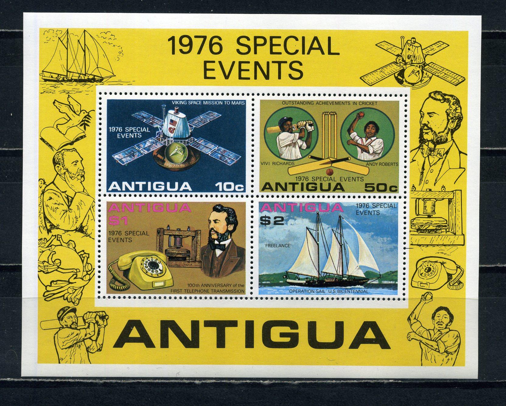 Почтовые марки. Антигуа. 1976г. Телефон. Космос. Блок №27.