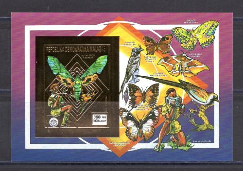 Почтовые марки. Мадагаскар. 1988г. Бабочки. Фольга. Золото. Блок №85 В.