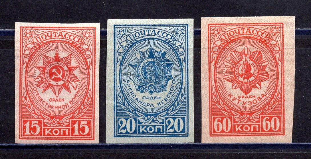 Почтовые марки. СССР. 1944г. Ордена. Беззубц. №894-895, №897, (без №896).