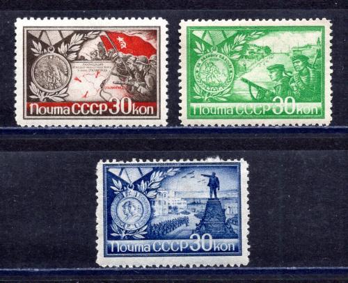 Почтовые марки. СССР. 1944г. Медали. №884 (33х22), №885-886.