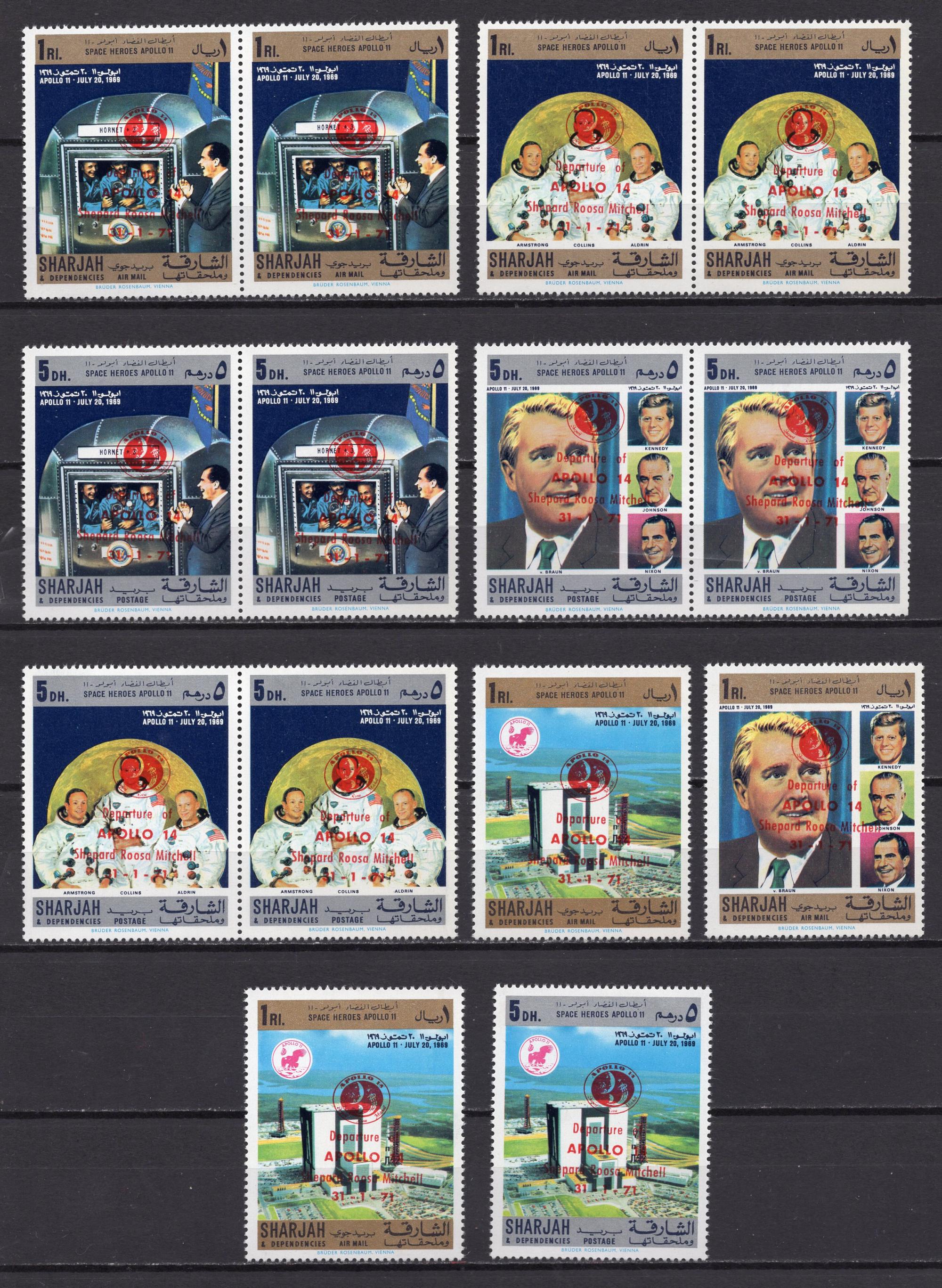Почтовые марки. Шарджа. 1971г. Космос. Надпечатка. №1068-71 etc. Некомплект. (См. сост.)
