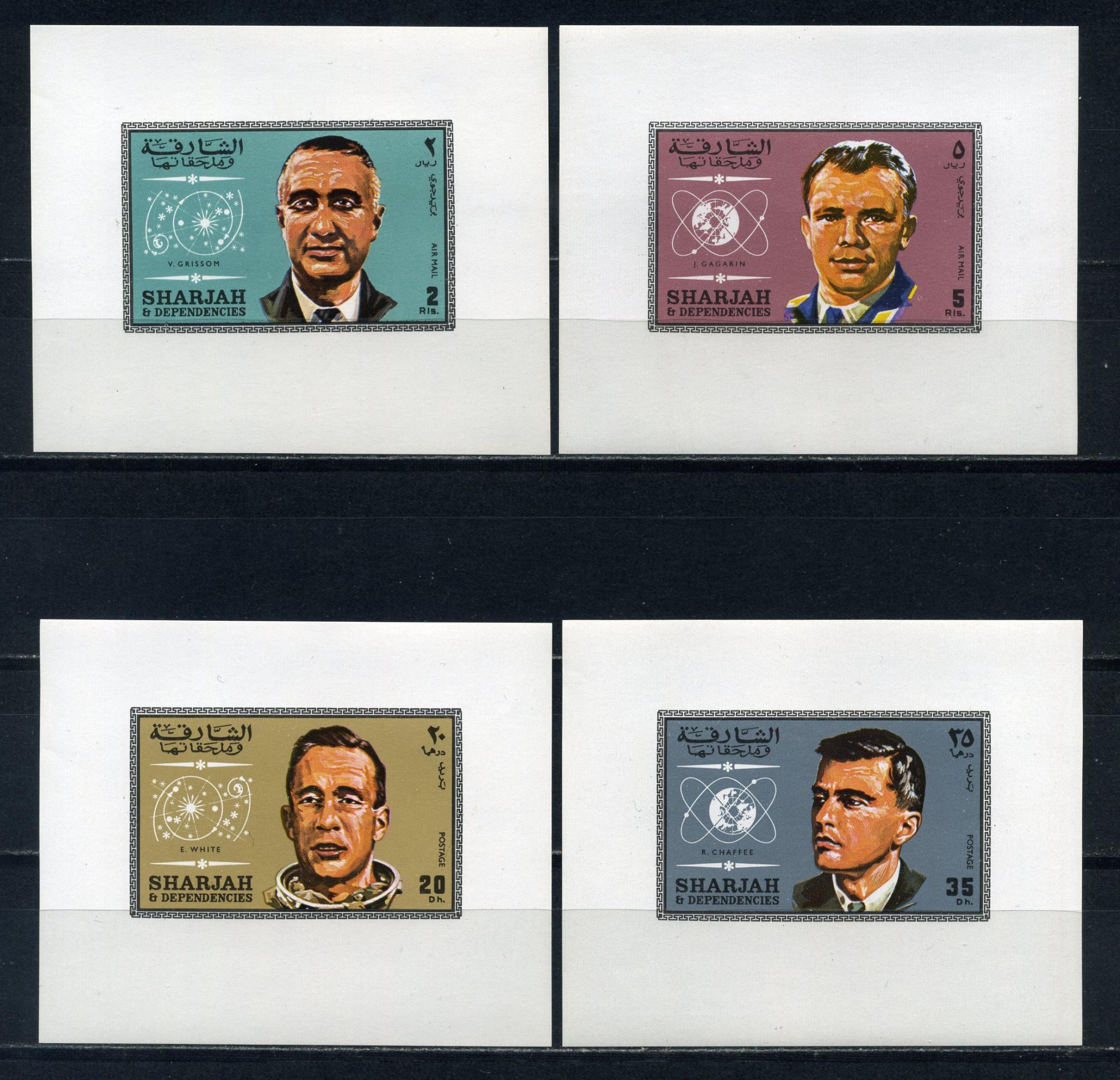 Почтовые марки. Шарджа. 1969г. Космос. Астронавты. Гагарин. Люкс-блоки. №534,537 и т.д. Беззубц.