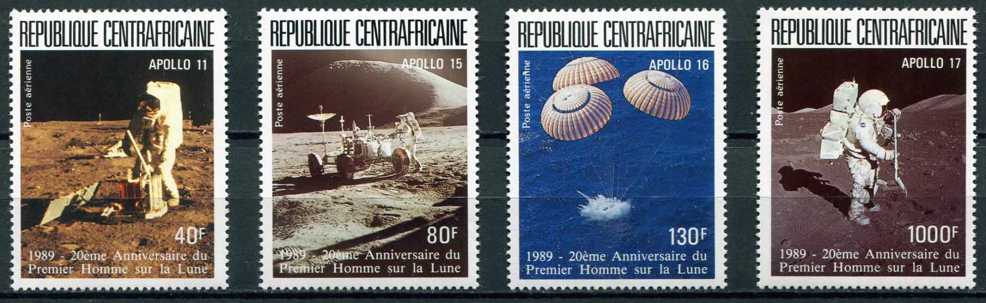Почтовые марки. ЦАР. 1989. Космос. 20-летие высадки на Луну. № 1377-1380.