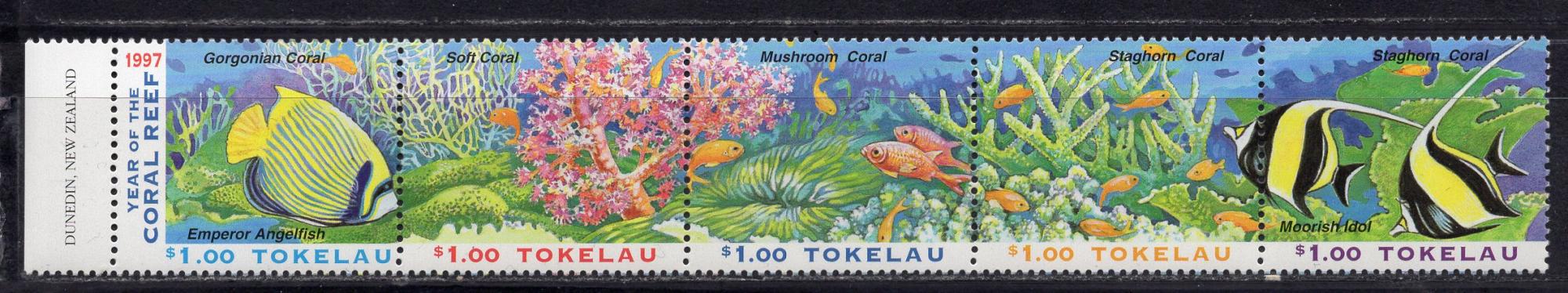 Почтовые марки. Токелау, 1997 г. №253-257. Сцепка. Морская жизнь.