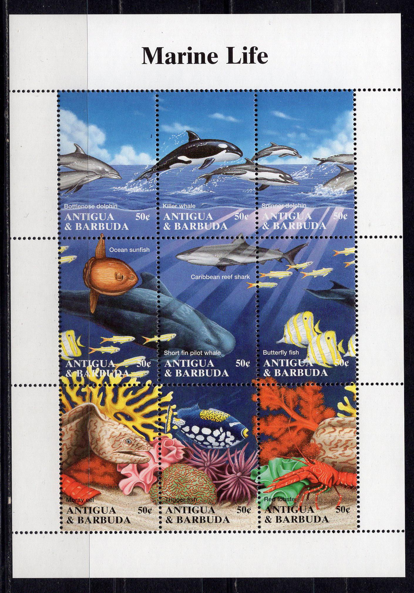 Почтовые марки. Антигуа и Барбуда, 1994 г. №2000-2008. МЛ. Морские обитатели.