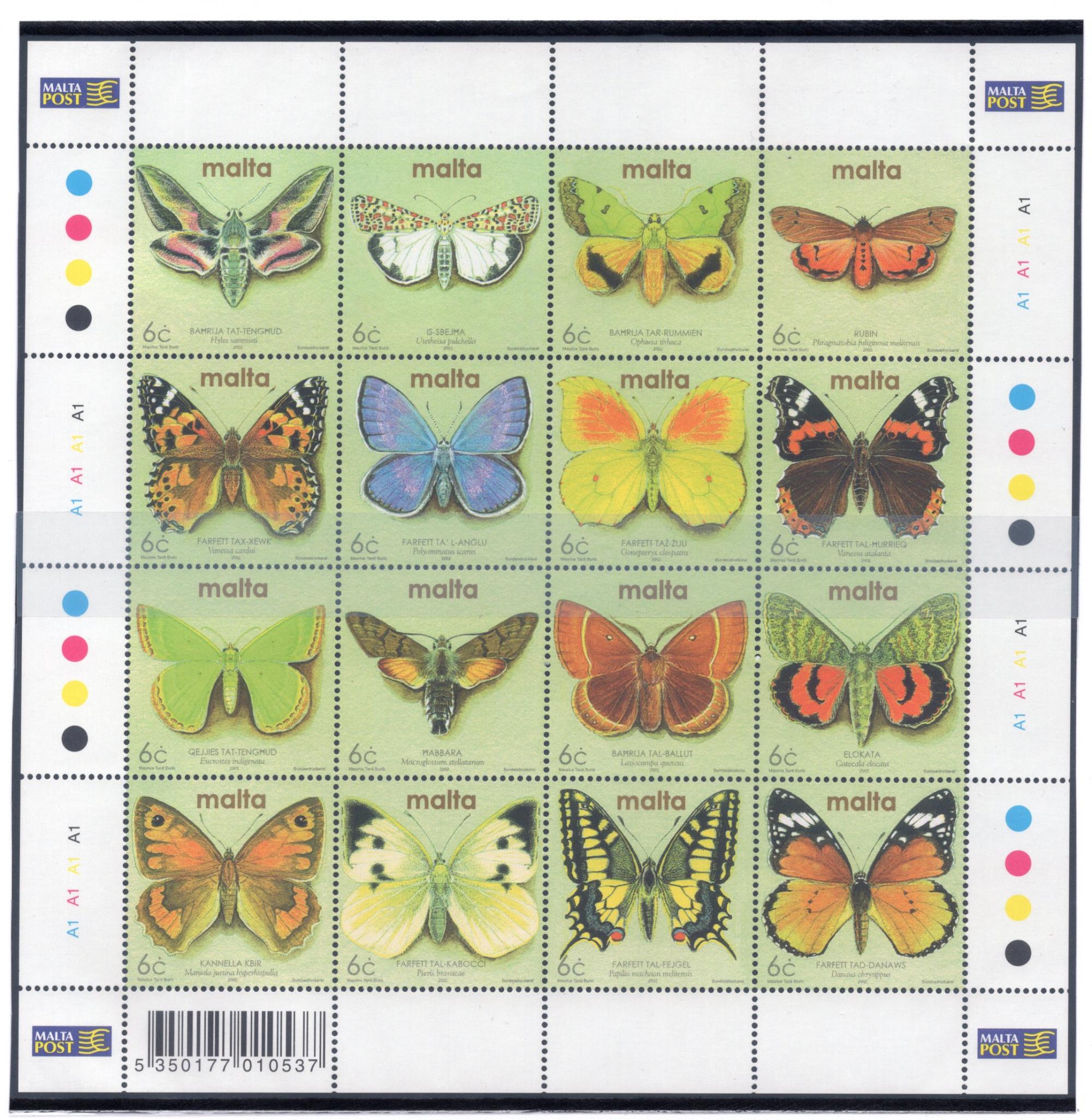 Почтовые марки. Мальта, 2002 г. №1217-1232. Фауна: бабочки.