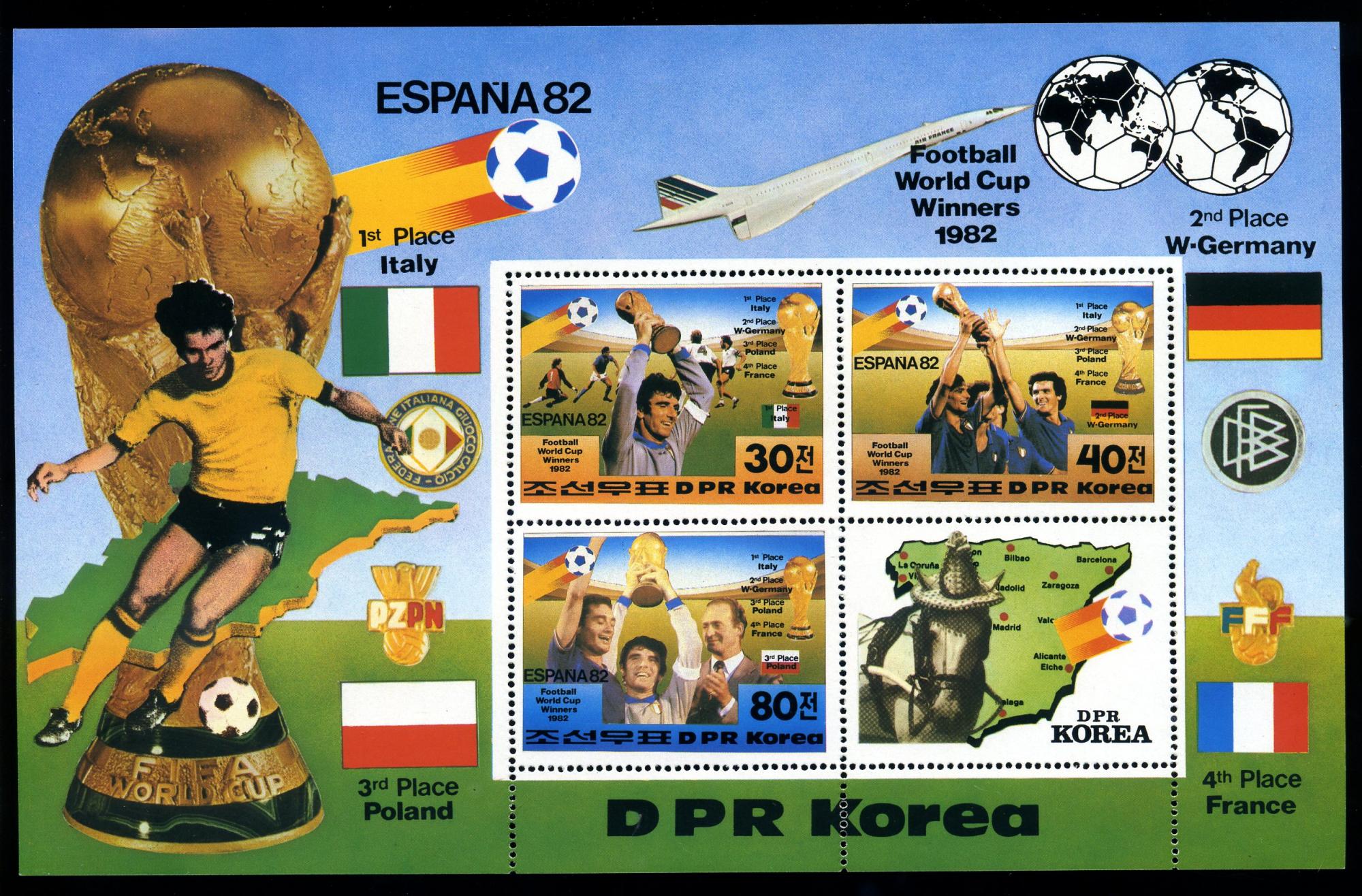 Почтовые марки. КНДР 1982 г Футбол Италия - чемпион! Бл. 124.