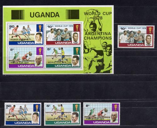 Почтовые марки. Уганда, 1978 г. №183-186. Бл. 11. Футбол. Надпечатка.