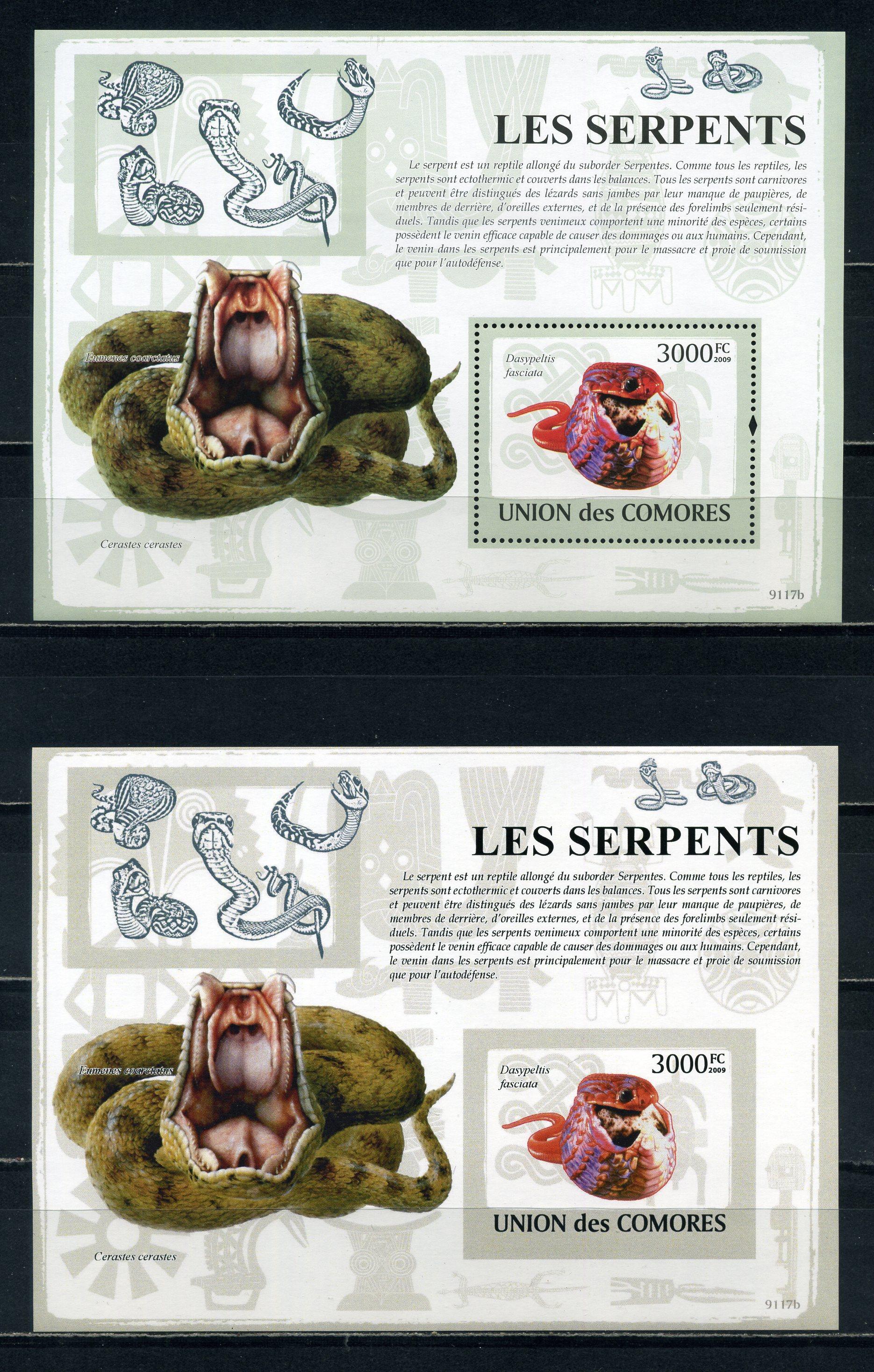 Почтовые марки. Коморы. 2009г. Змеи. Блок №474 а+в.