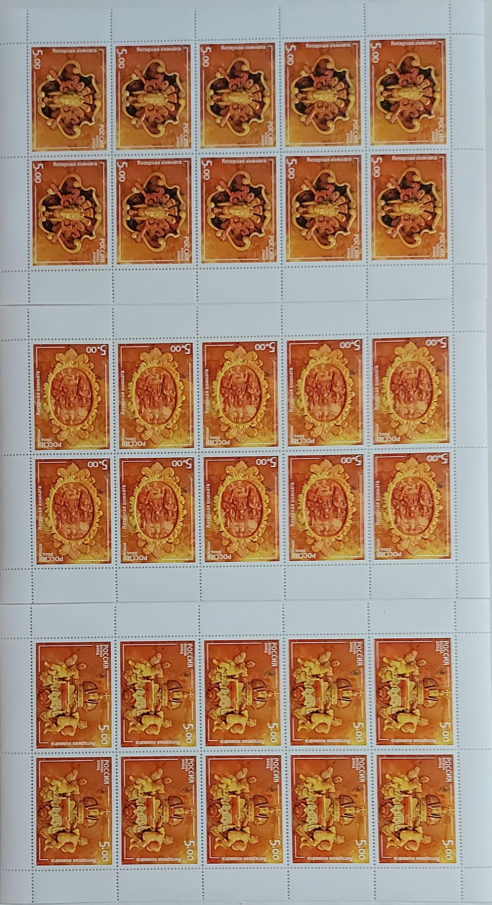 Почтовые марки. Россия. 2004. Янтарная комната. ЛИСТЫ. № 945-947