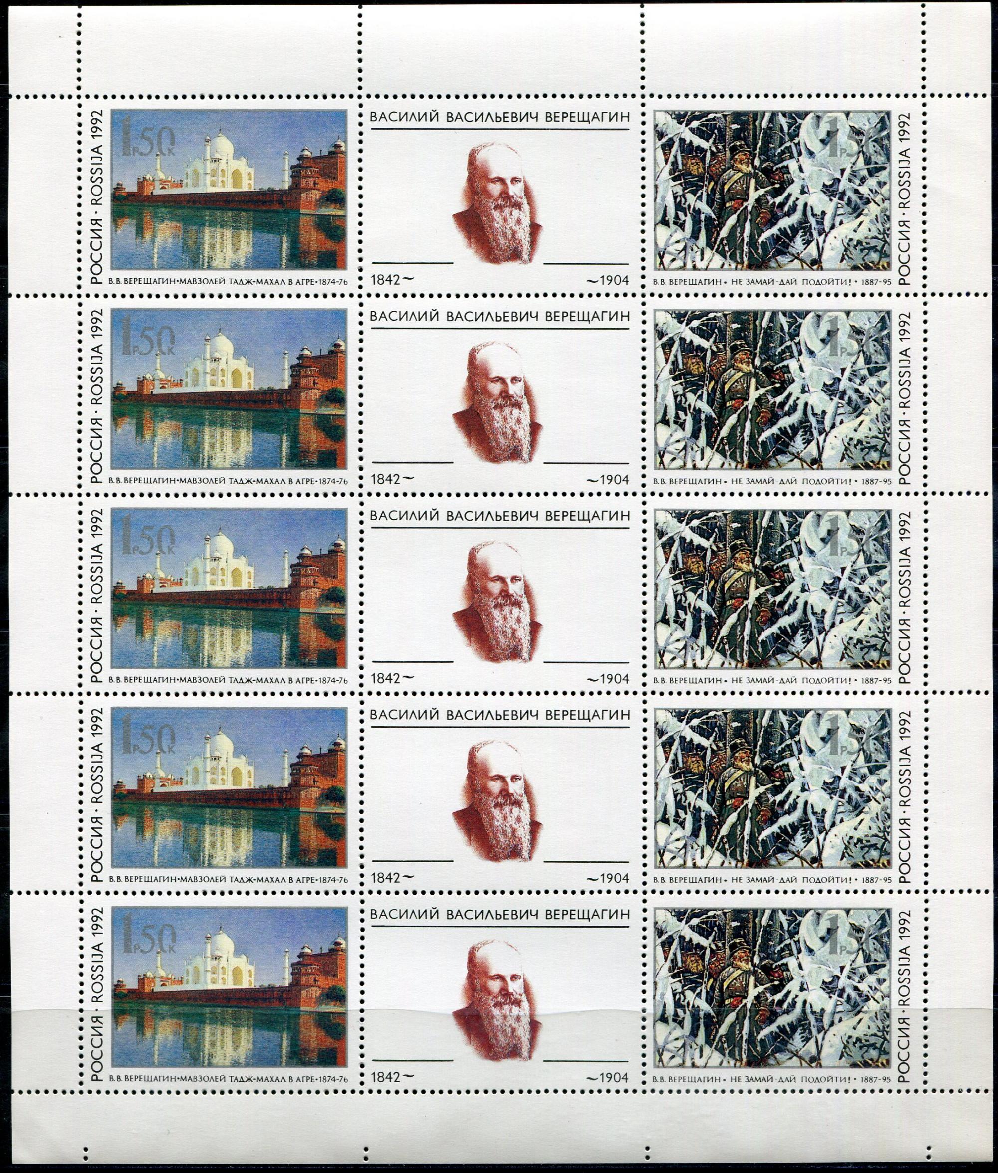Почтовые марки. Россия. 1992. Верещагин. Лист. № 39-40