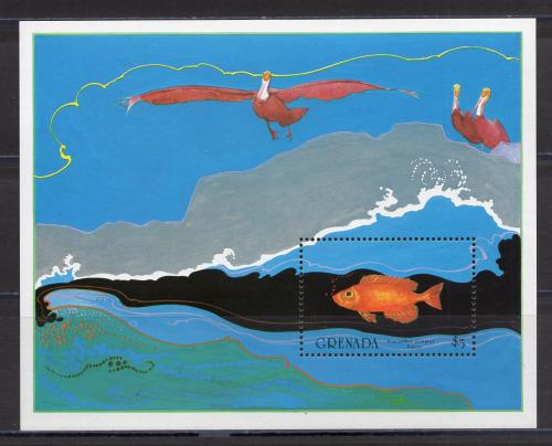 Почтовые марки. Гренада. 1985г. Рыбы. Птицы. Блок №149 (№1433).