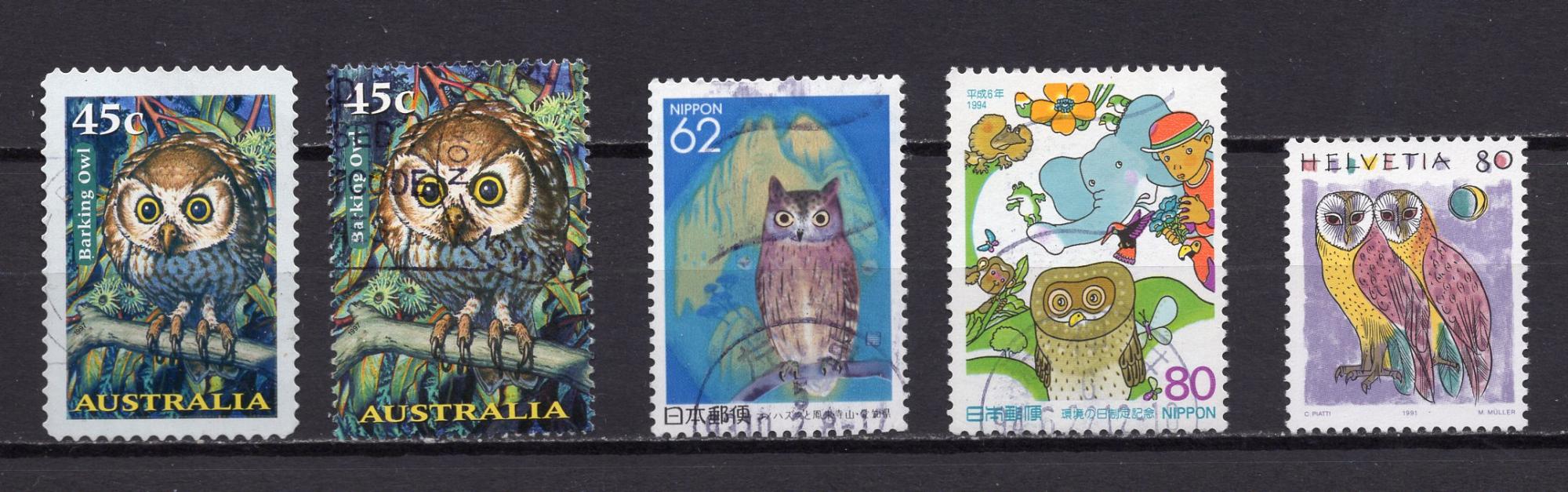 Почтовые марки. Сборный лот. Австралия, 1991-1994 г. Совы. №1437 etc.