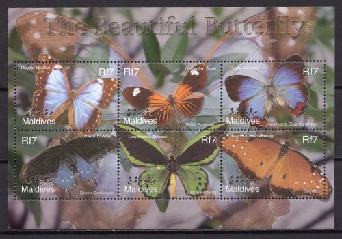 Почтовые марки. Мальдивы, 2002 г. Бабочки. МЛ. №3987-92.
