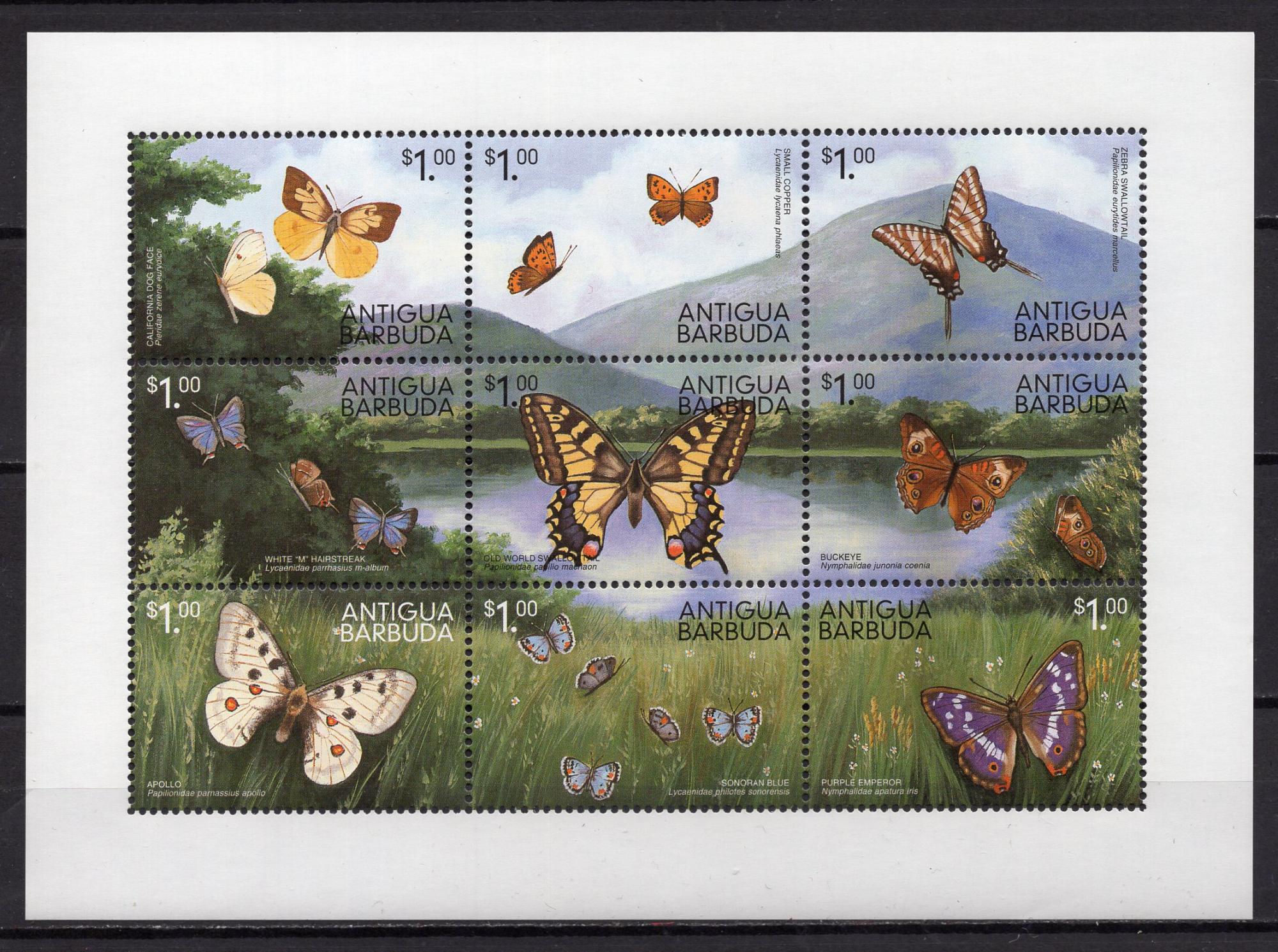 Почтовые марки. Антигуа, 1999 г. Бабочки. МЛ. №3027-35.