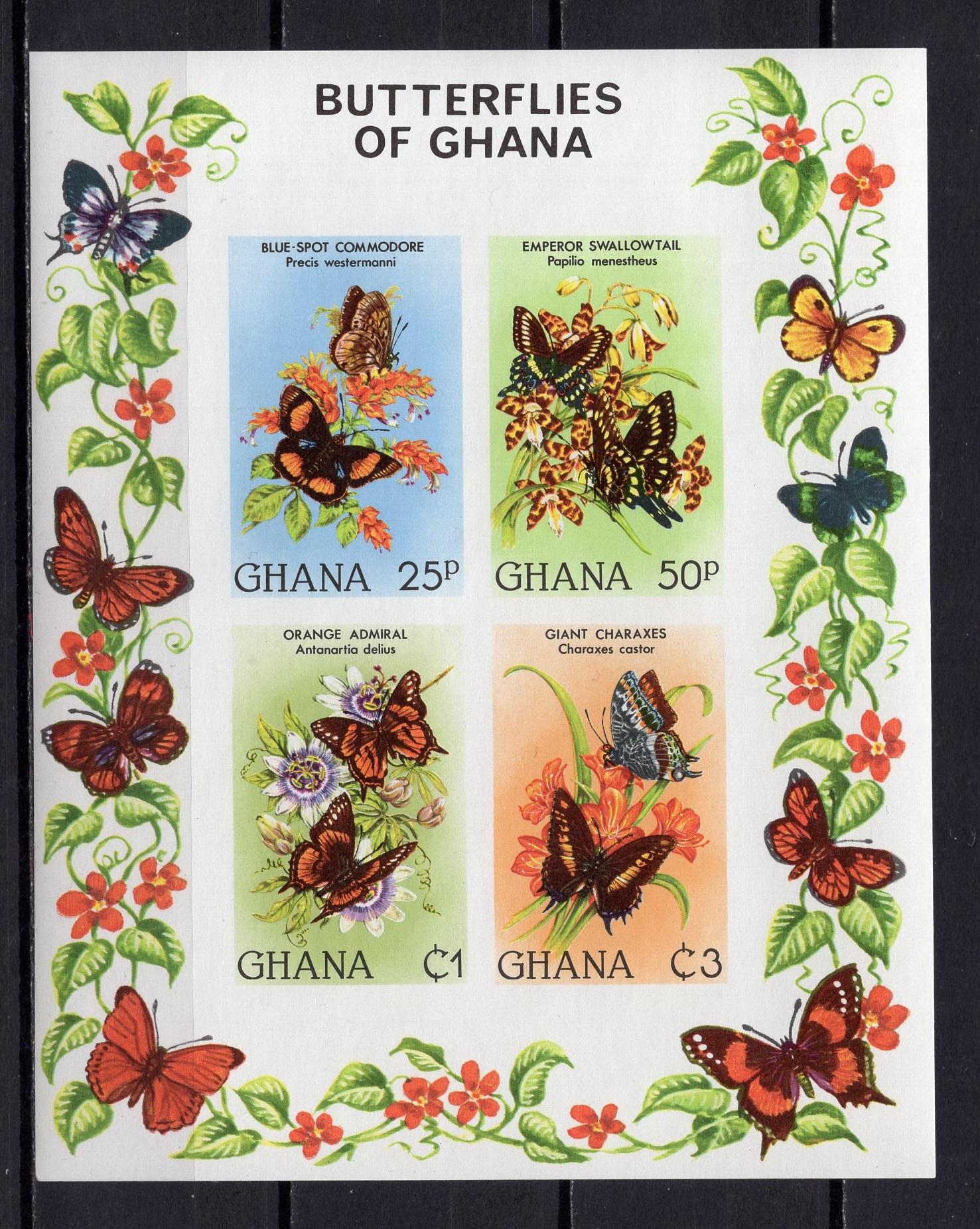 Почтовые марки. Гана, 1982 г. Бабочки. Бл. 95. Безз.