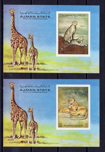 Почтовые марки. Аджман, 1972 г. Львы и леопарды. Люкс блоки. №1405-1406. Безз.