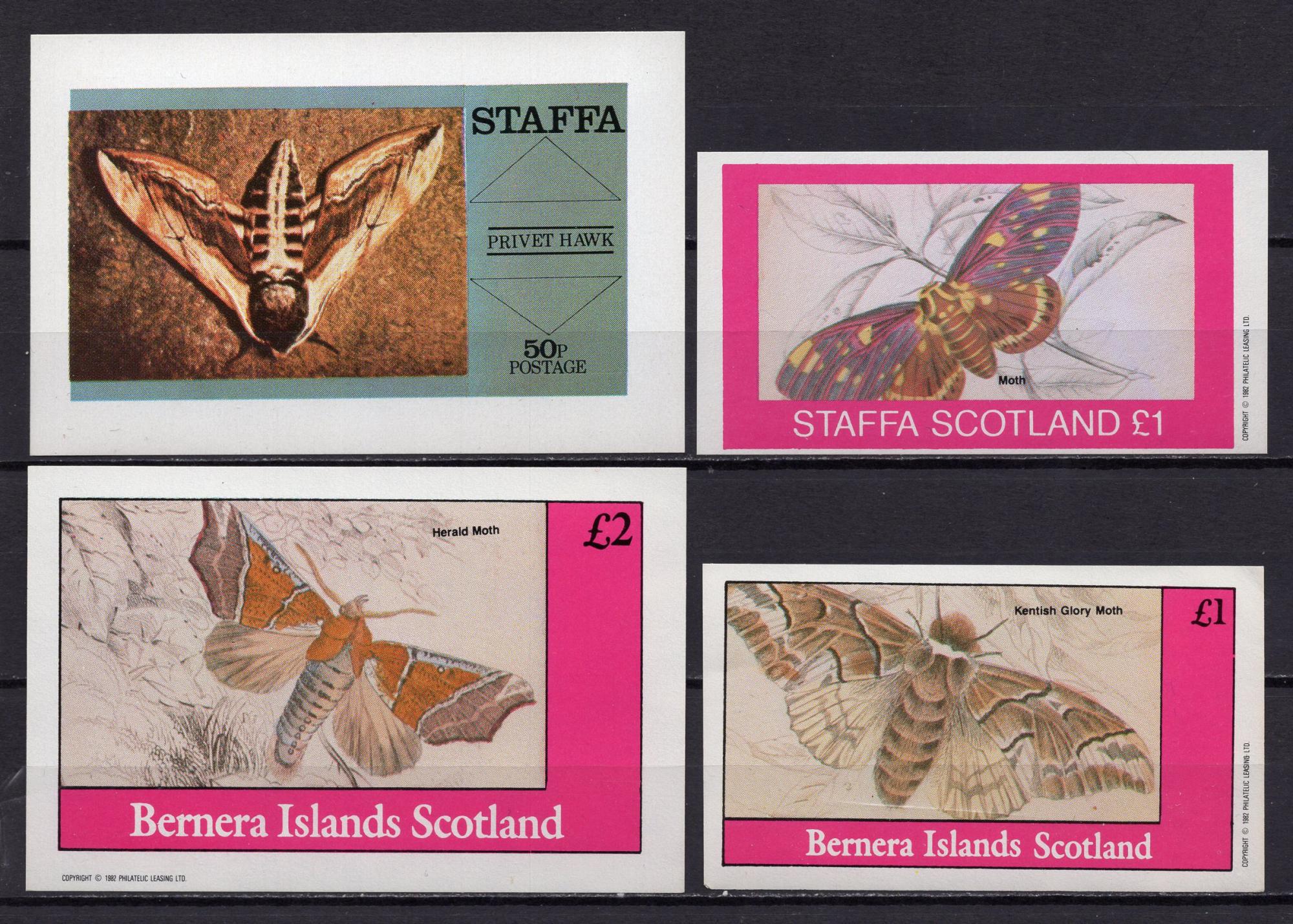 Почтовые марки. Staffa и Bernera, 1982 г. Мотыльки и бабочки. Безз.