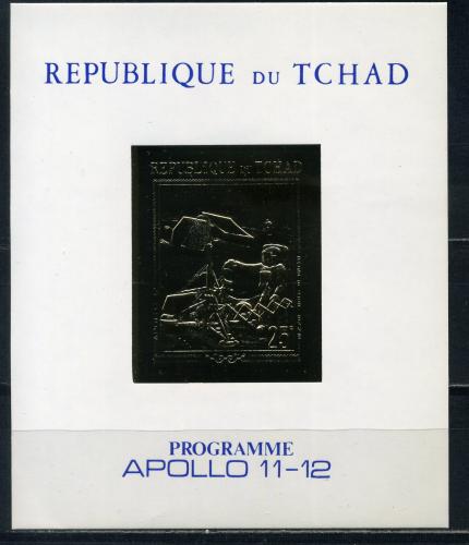 Почтовые марки. Чад. 1970г. Космос. Аполлон 11-12. Фольга. Золото. Блок №10 (Michel: 35.00 Евро).