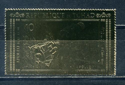 Почтовые марки. Чад. 1971г. Космос. Аполло-11. Фольга. Золото. №387.