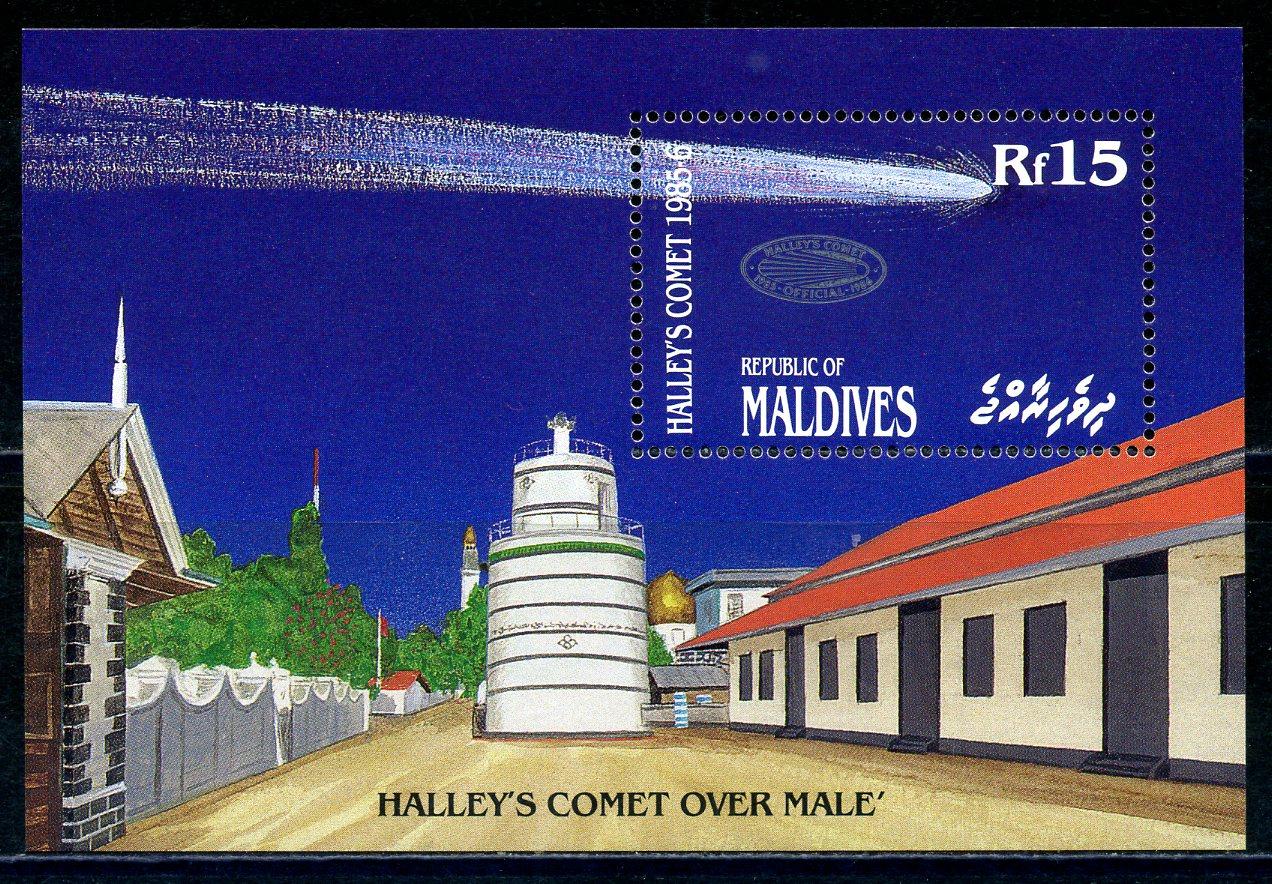 Почтовые марки. Мальдивы. 1986г. Космос. Комета. Надп. Блок №128.