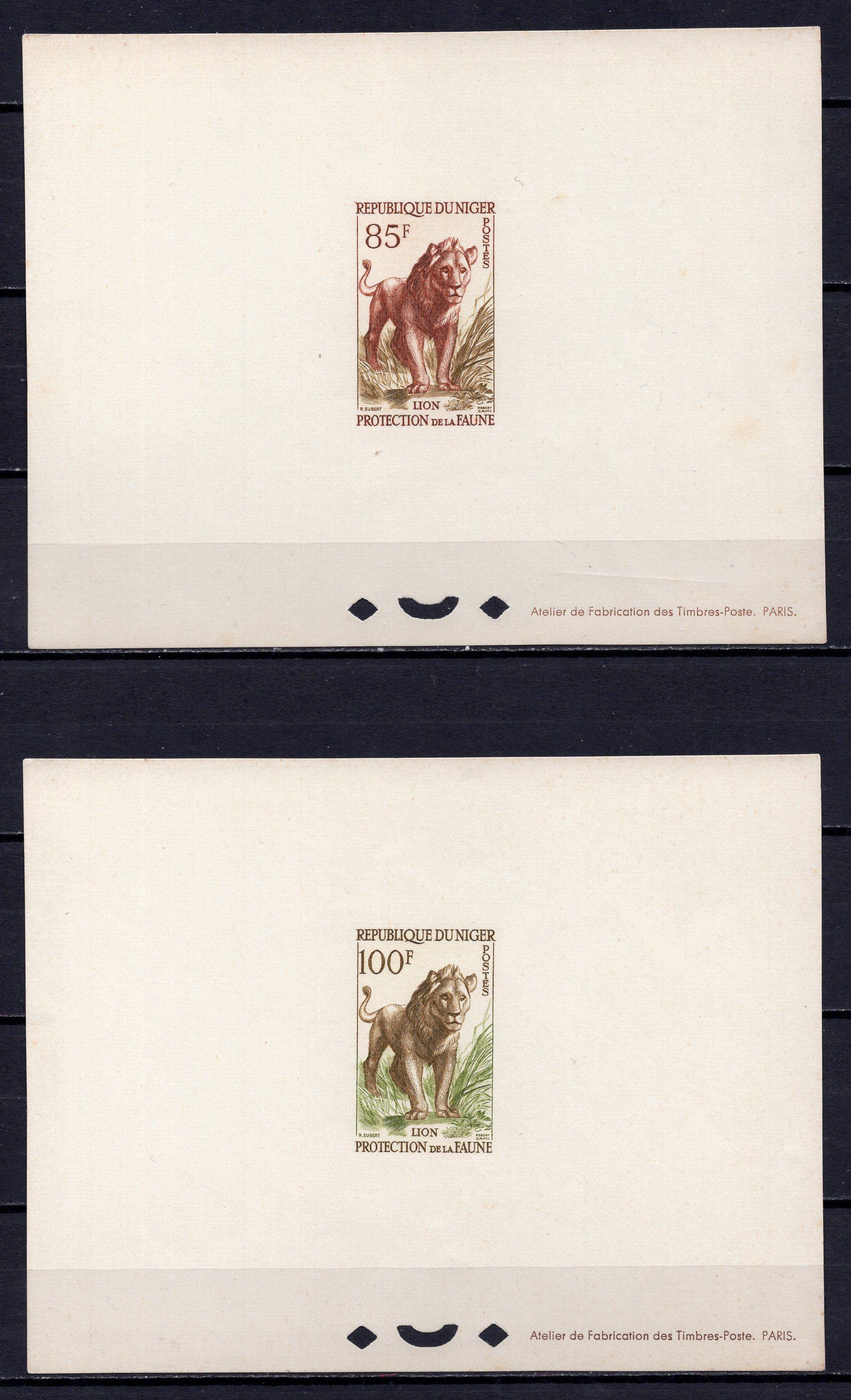 Почтовые марки. Нигер, 1959 г. Львы. Металлография. Люкс-блоки (из серии). №11, 12.
