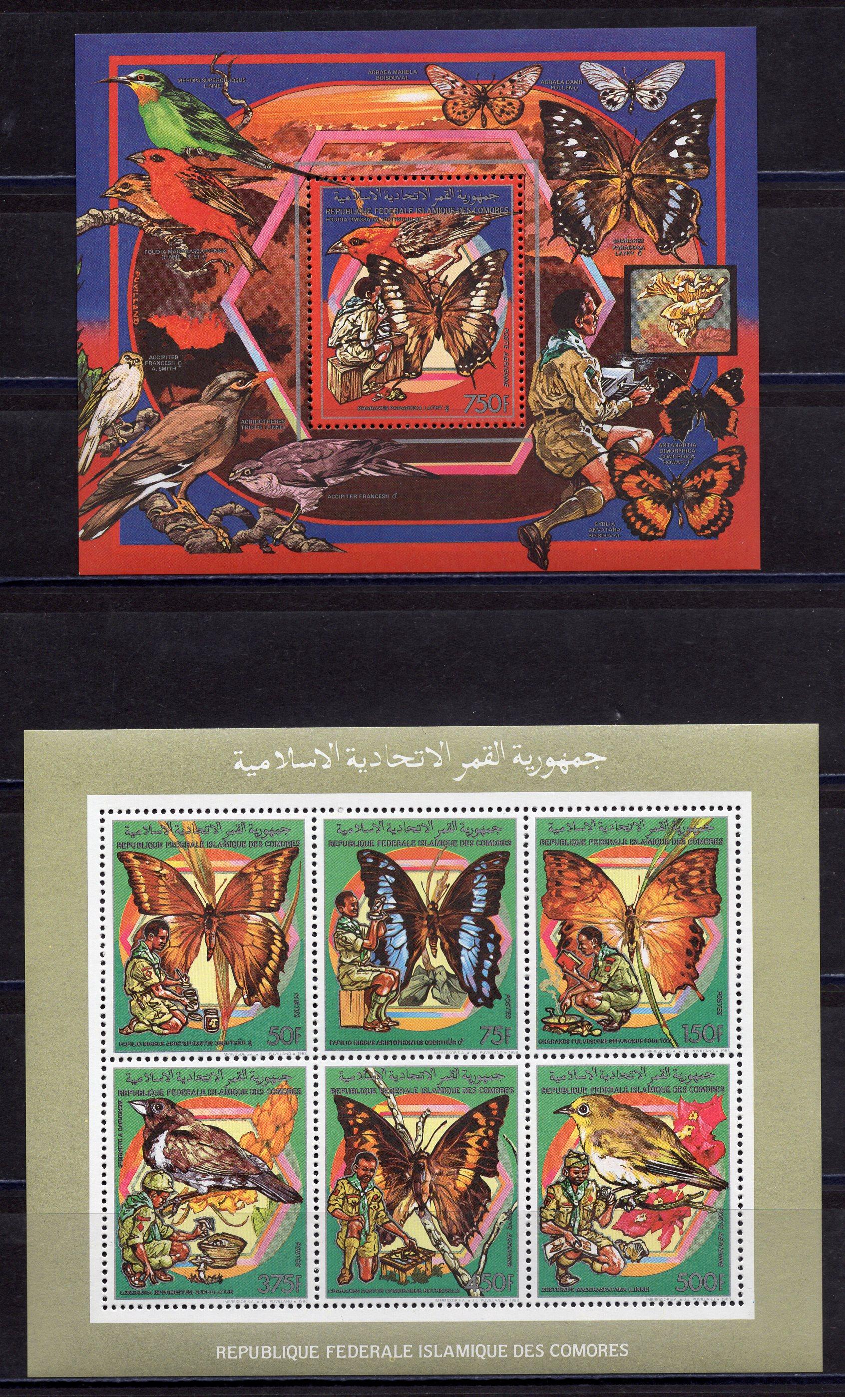 Почтовые марки. Коморы. 1989г. Бабочки и Птицы. №878-883, Блок №286.
