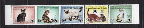 Почтовые марки. Ливия. 1996г. Кошки. №2387-2391.