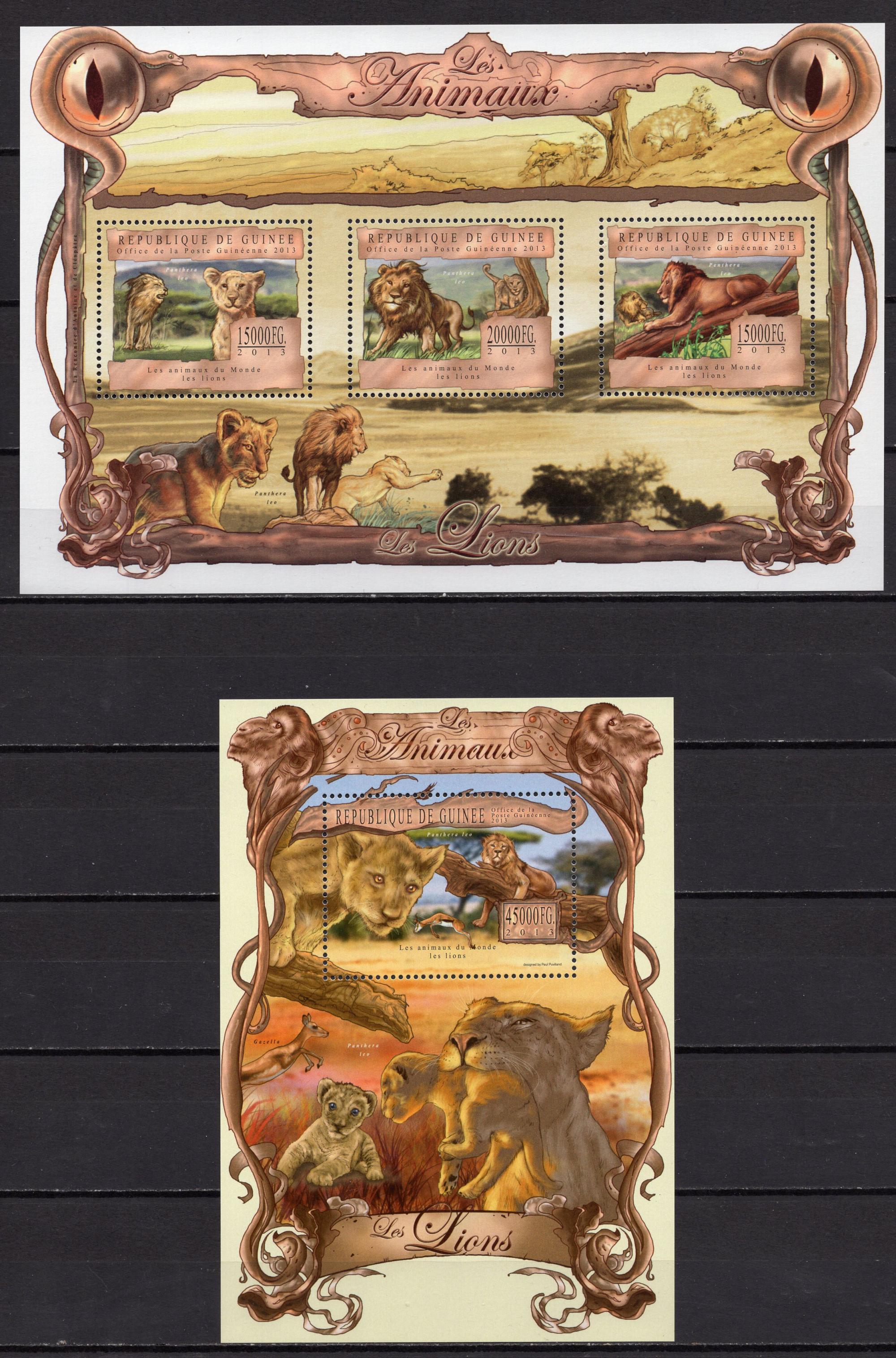 Почтовые марки. Гвинея, 2013 г. Львы. №9841-9843. Бл. 2235. (38,0)