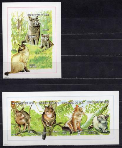 Почтовые марки. Мали, 1998 г. Кошки. №1991-1994. Бл. 120. Безз.