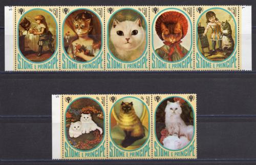 Почтовые марки. Сан-Томе. 1981г. Кошки в живописи. №730-736.