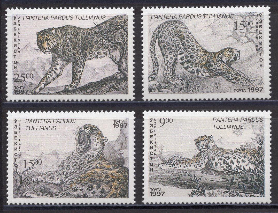 Почтовые марки. Узбекистан. 1997г. Леопард. №145-148.