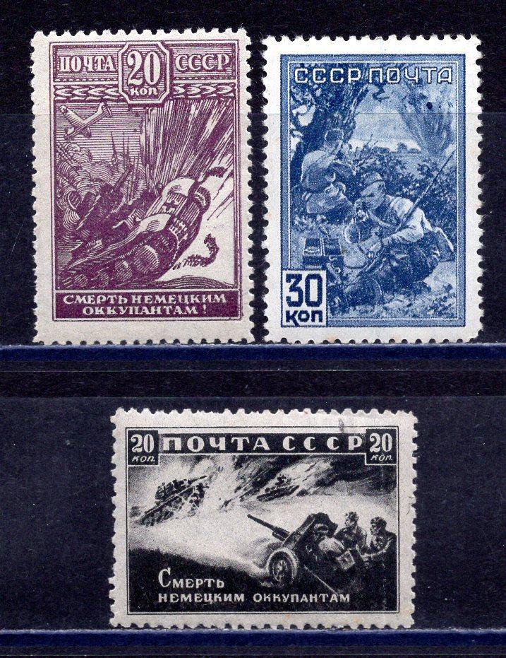 Почтовые марки. СССР. 1942-1943г. Война. №830-831, №833Р (ВР).