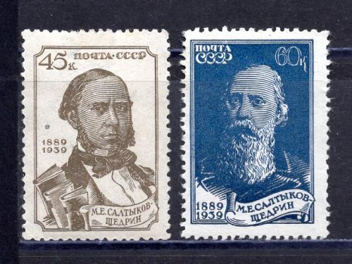 Почтовые марки. СССР. 1939г. Салтыков-Щедрин. (осн.м.). №704, №705 (Б/К).