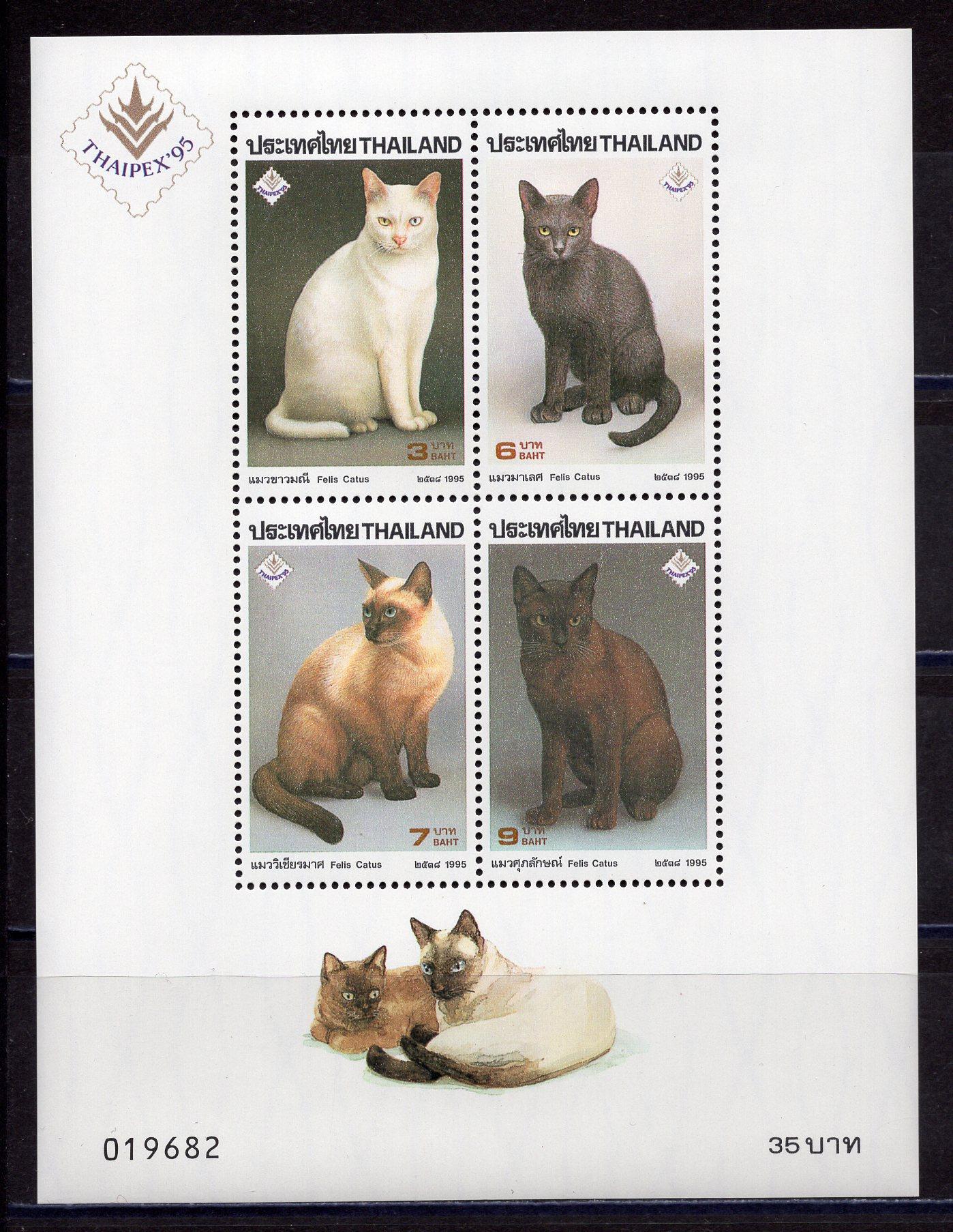 Почтовые марки. Тайланд. 1995г. Кошки. Блок №67.