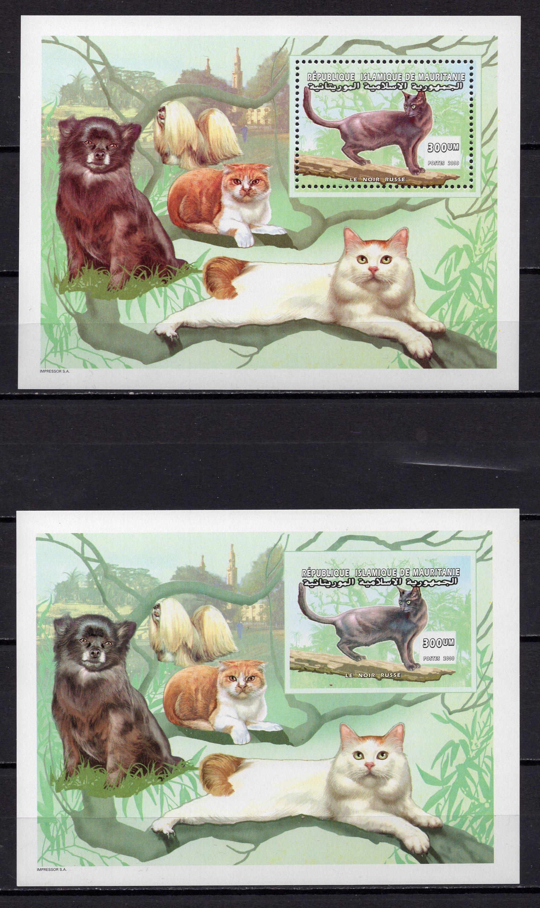 Почтовые марки. Мавритания, 2000 г. Кошки. Бл. 78 А + В.