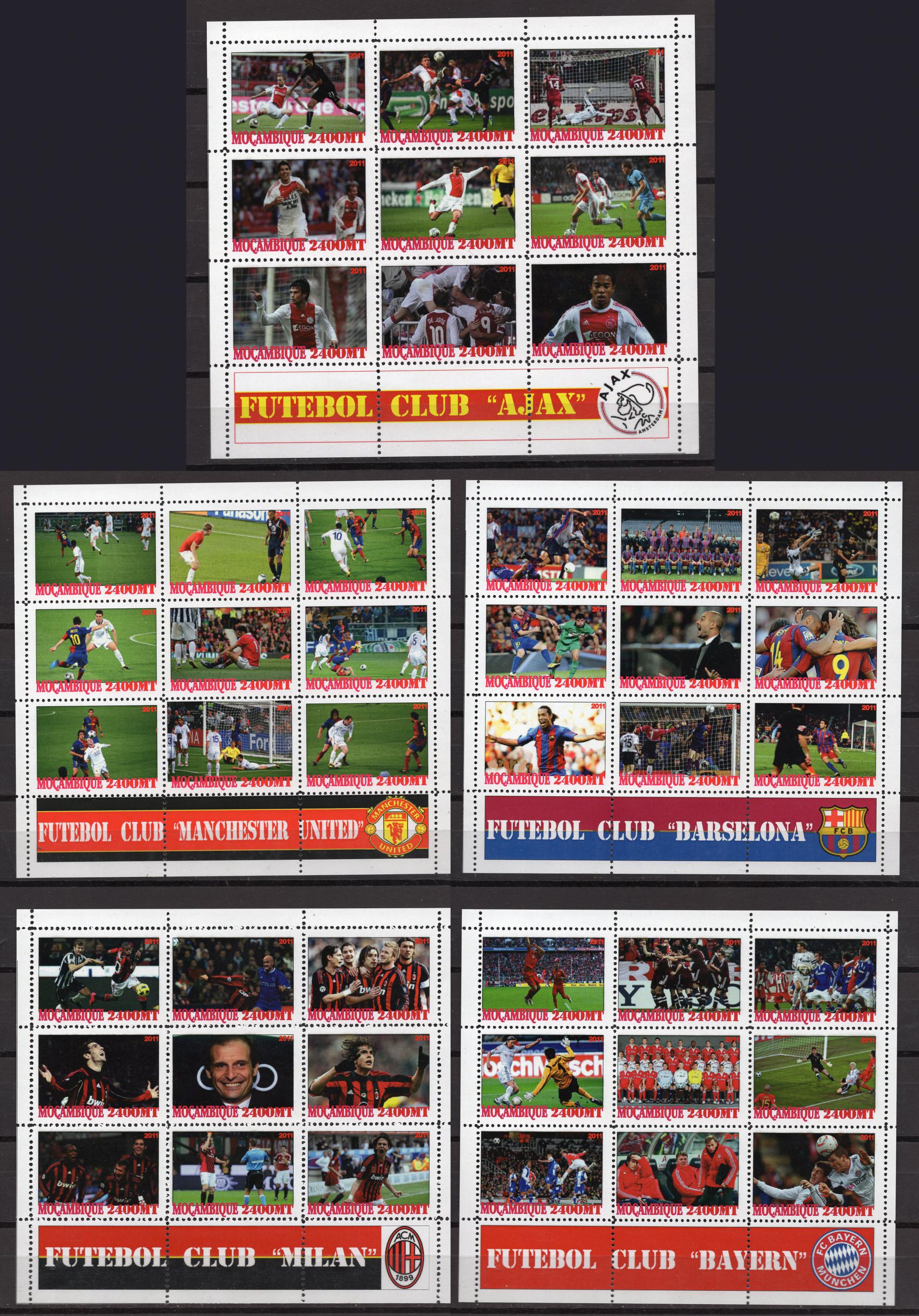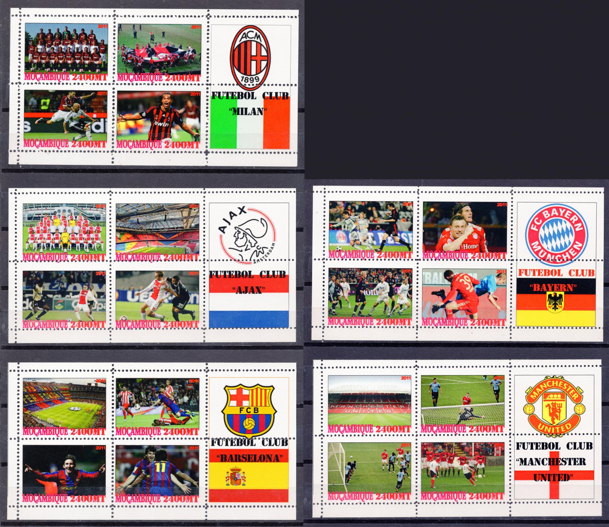 Почтовые марки. Мозамбик, 2011 г. Футбол. Футбольные клубы. Некатал.