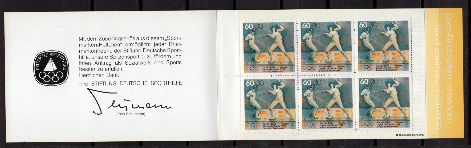 Почтовые марки. ФРГ, 1992 г. Олимп. Игры. Буклет. Марка №1592.