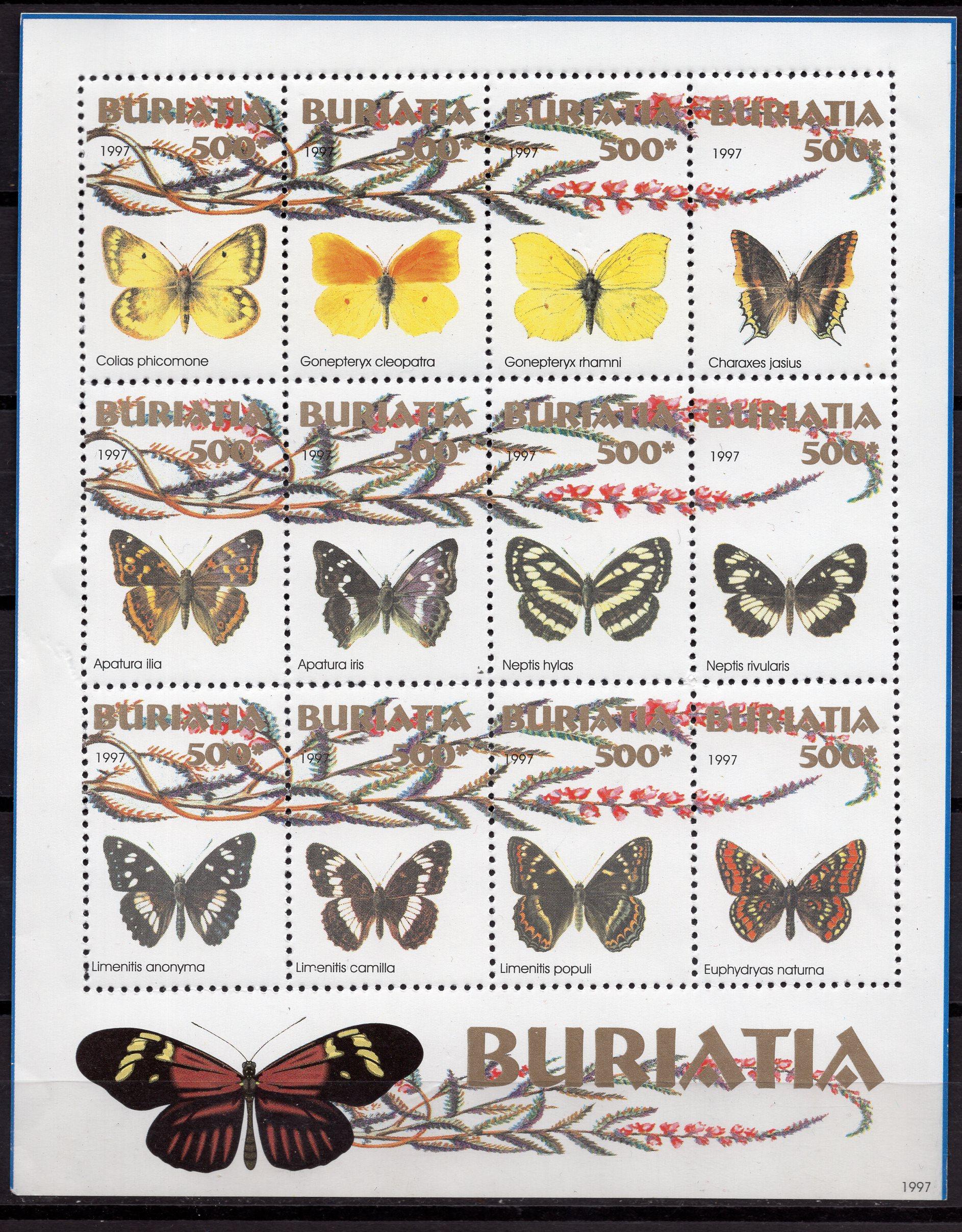 Почтовые марки. Бурятия (Россия), 1997 г. Бабочки. (Некатал.)
