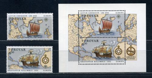 Почтовые марки. Фареры. 1992г. Европа. Открытие Америки. №231-232. Блок №5.