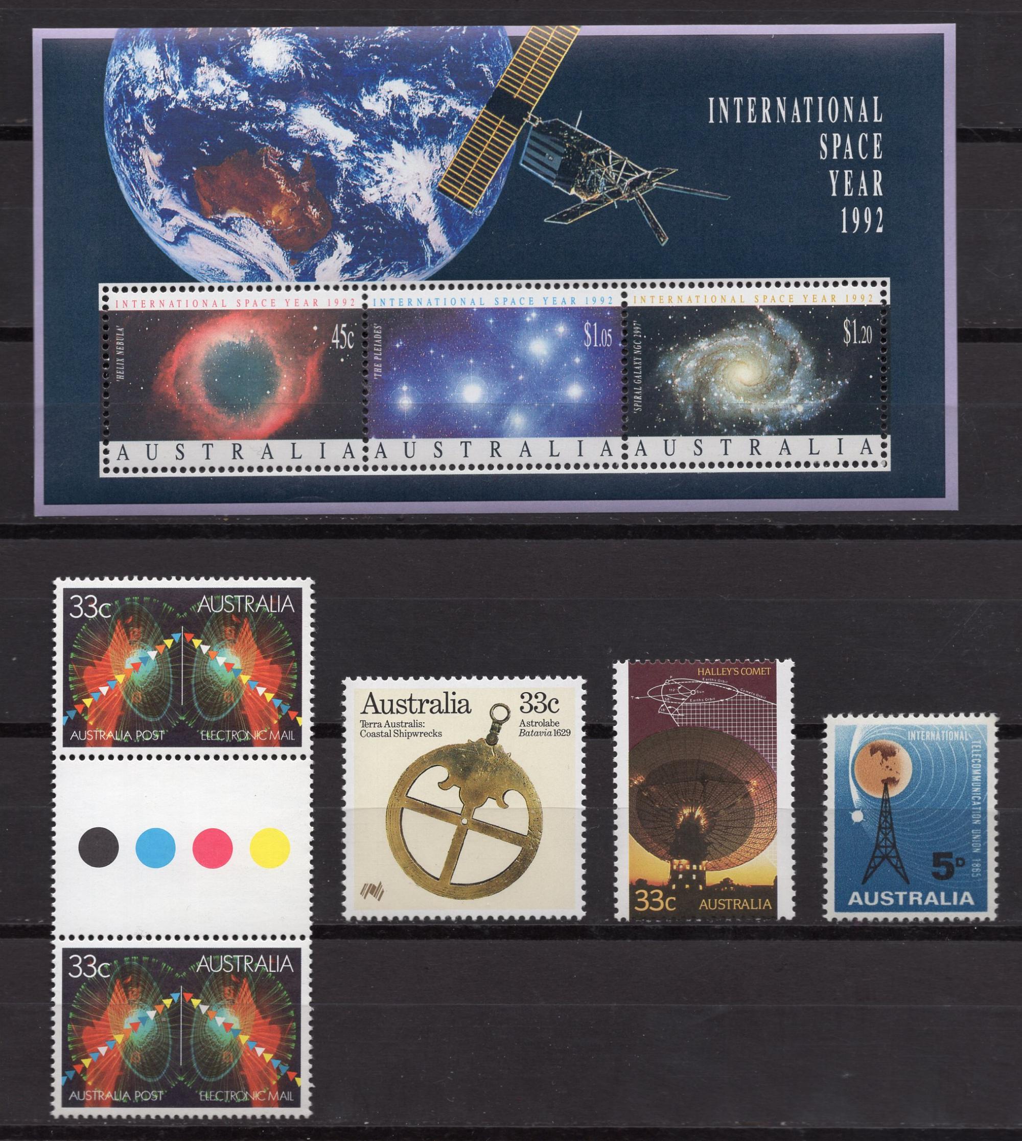 Почтовые марки. Австралия. 1965-1992г. Сборный лот. Год Космоса. Астрономия. Блок №14 etc.