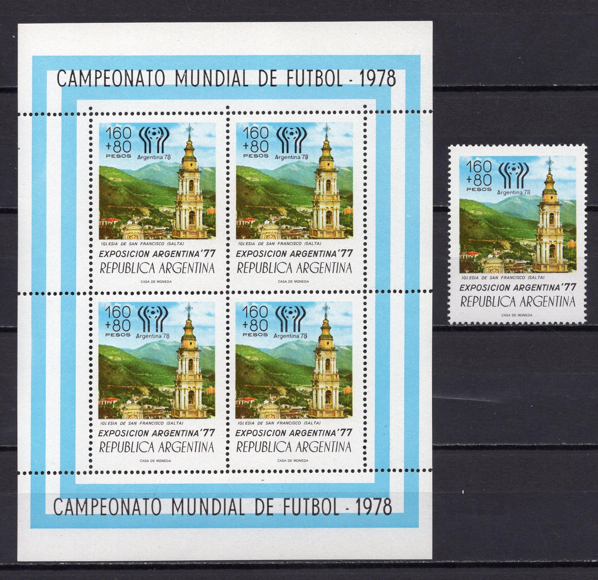 Почтовые марки. Аргентина, 1978 г. Филвыставка. Футбол. Надпечатка. №1322 + МЛ.