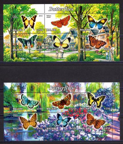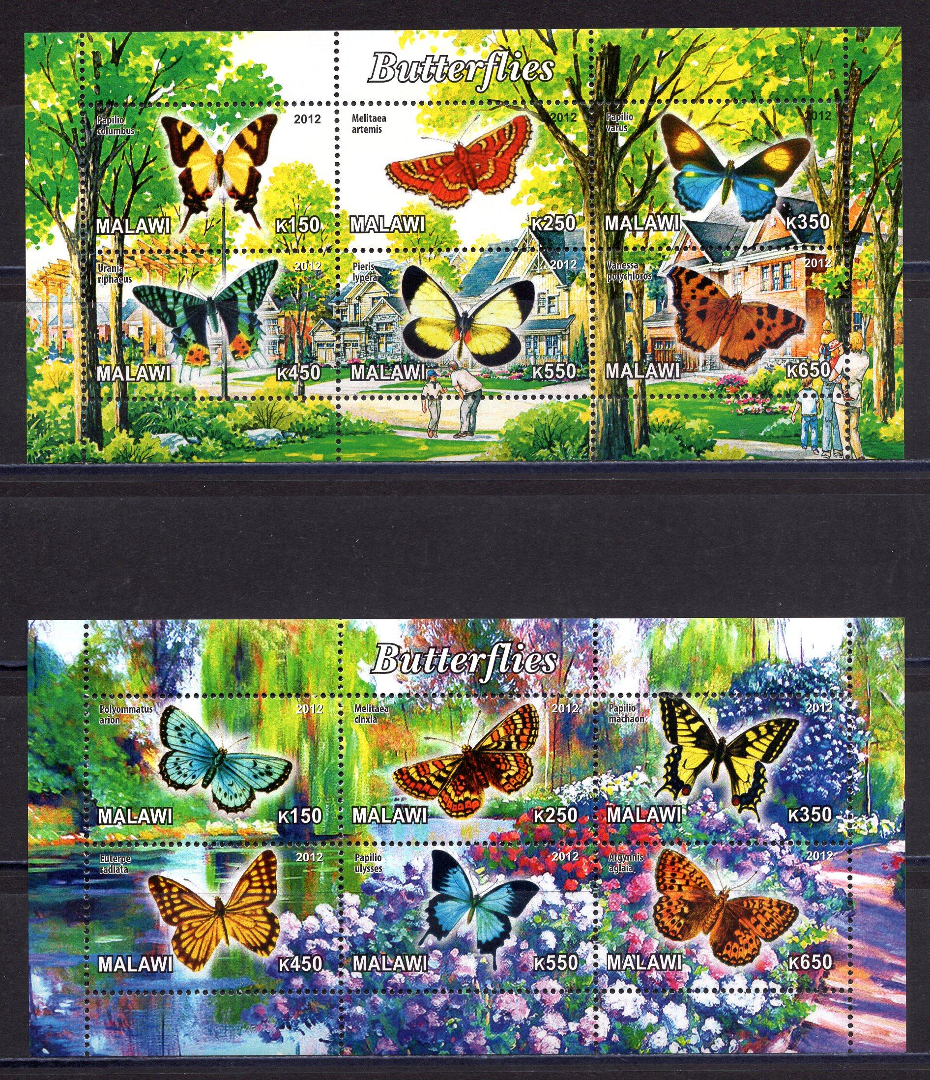 Почтовые марки. Малави. 2012г. Бабочки. 2 МЛ. Некаталог.