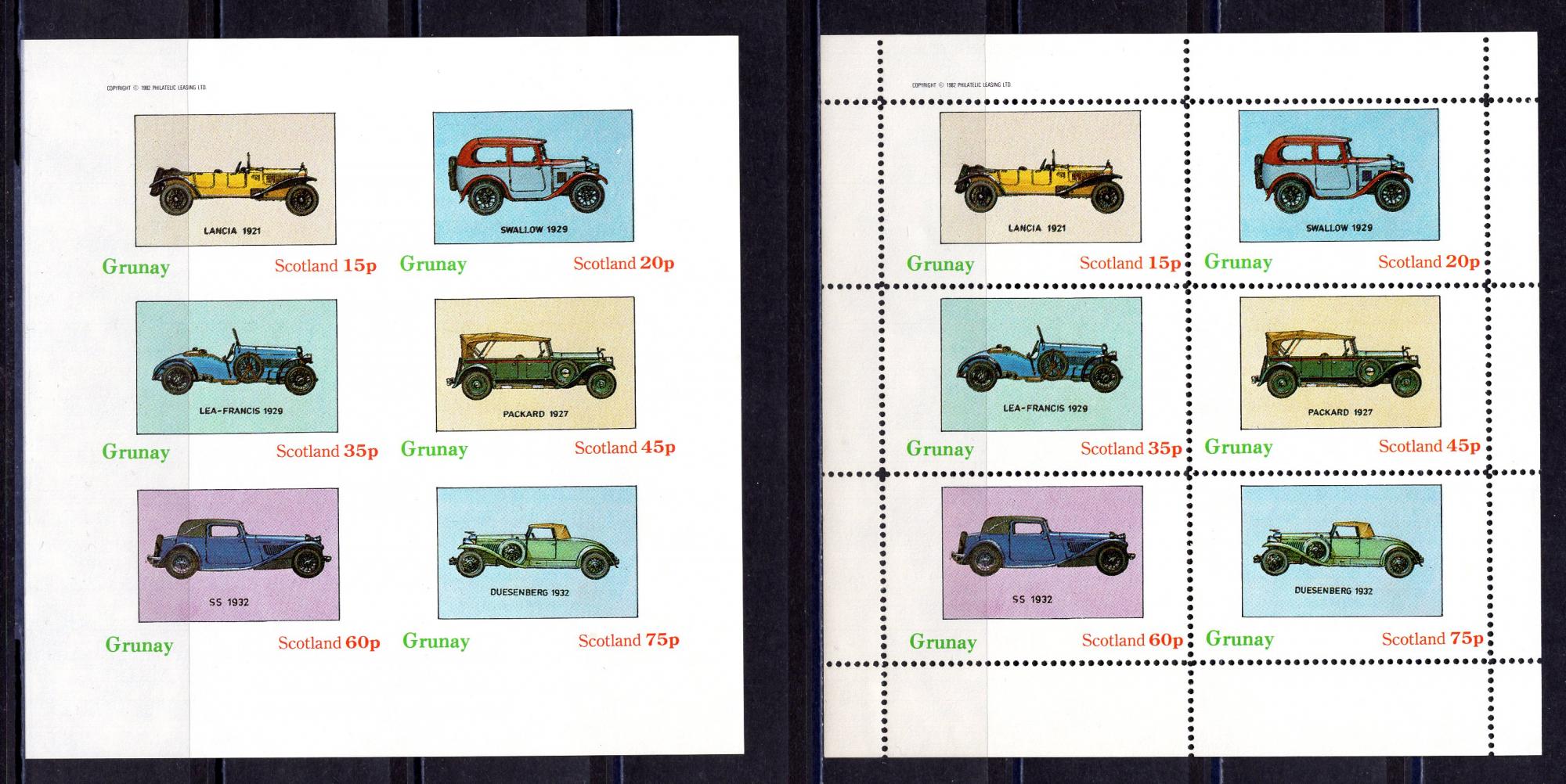 Почтовые марки. Шотландия. Остров Грунай. 1982г. Автомобили. 2 МЛ. Некаталог.